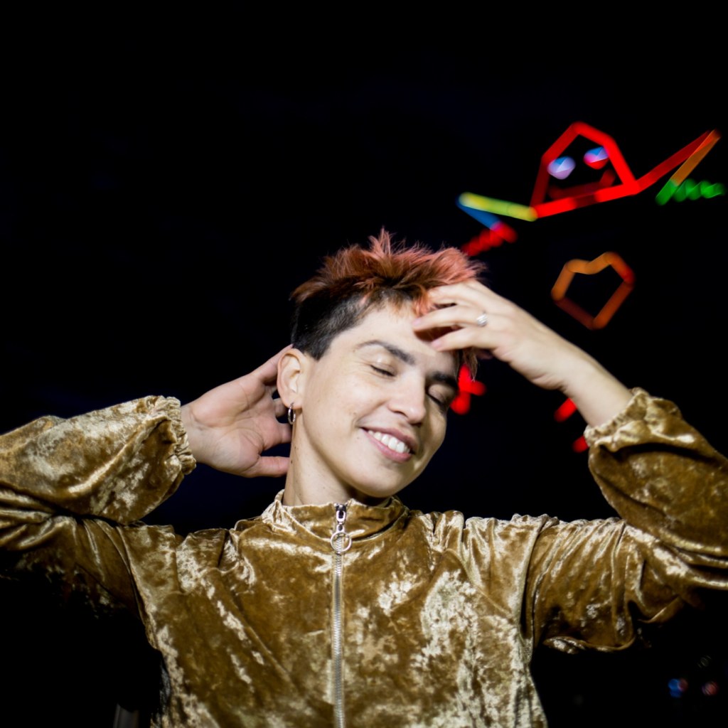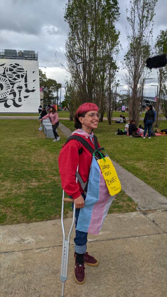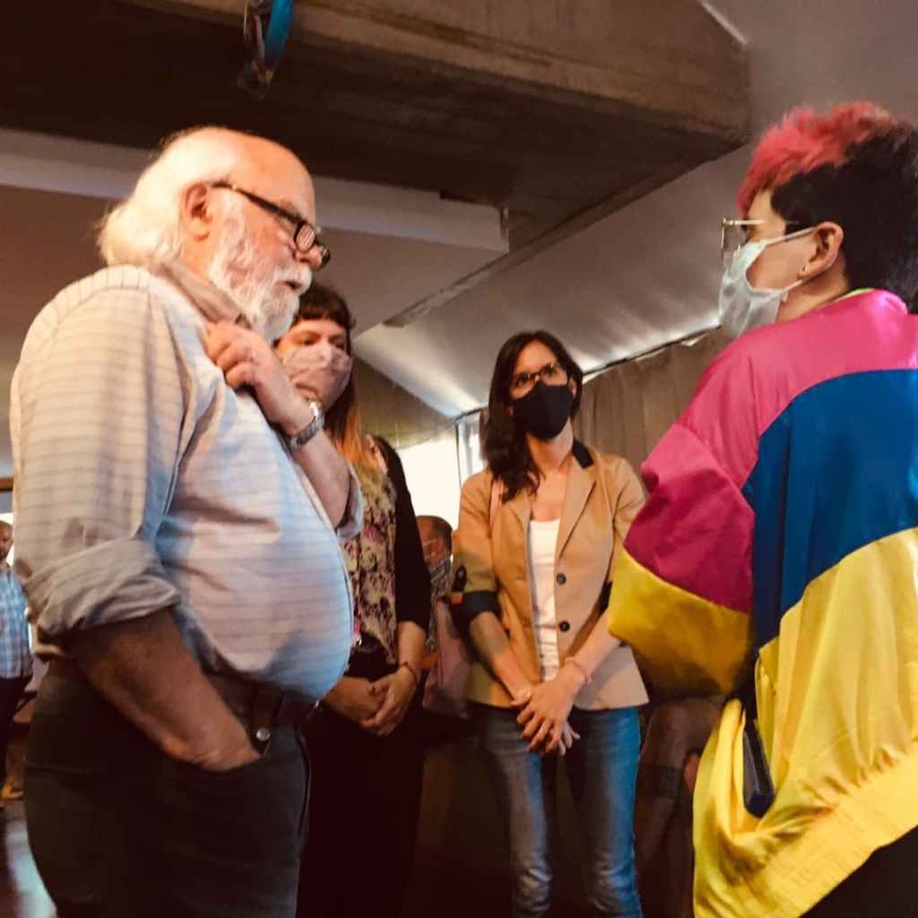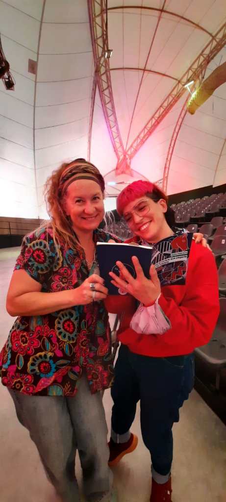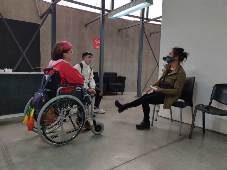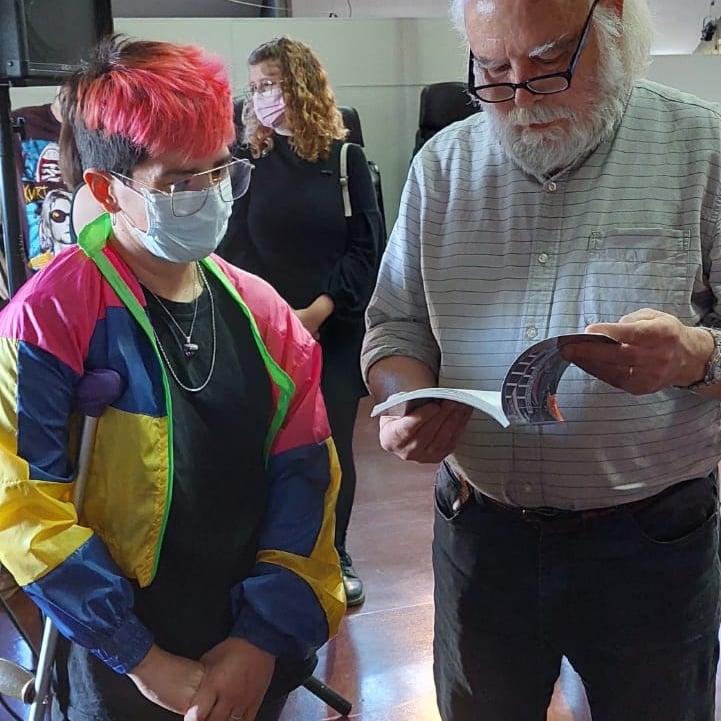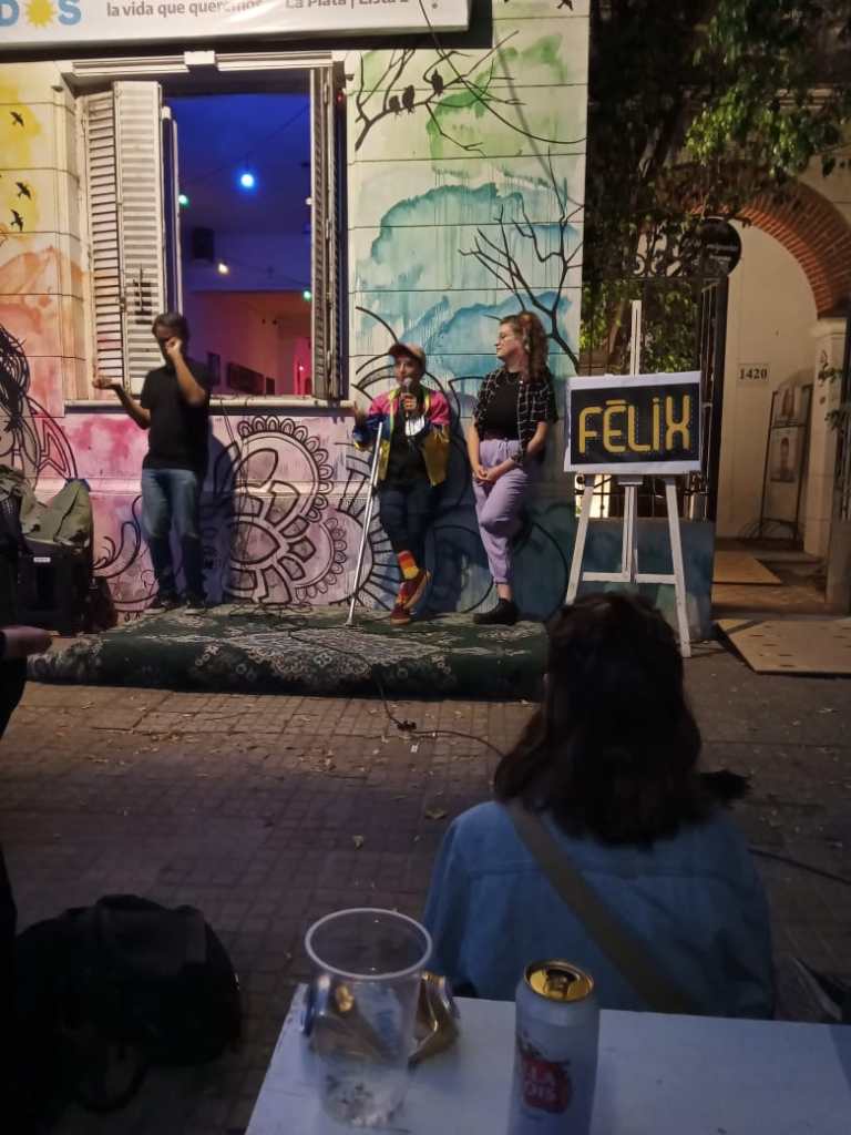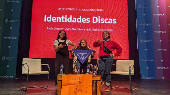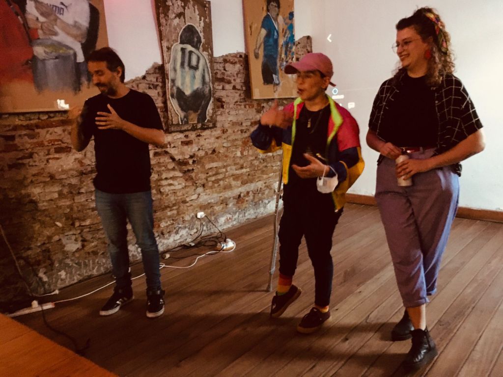 En 2021 nos convocaron al Espacio Tolomocho para organizar una actividad. Propusimos hablar de la identidad disca en tecnopolis. Hubo interprete de lengua de señas argentinas, y fue un primer encuentro real después de la pandemia del covid.