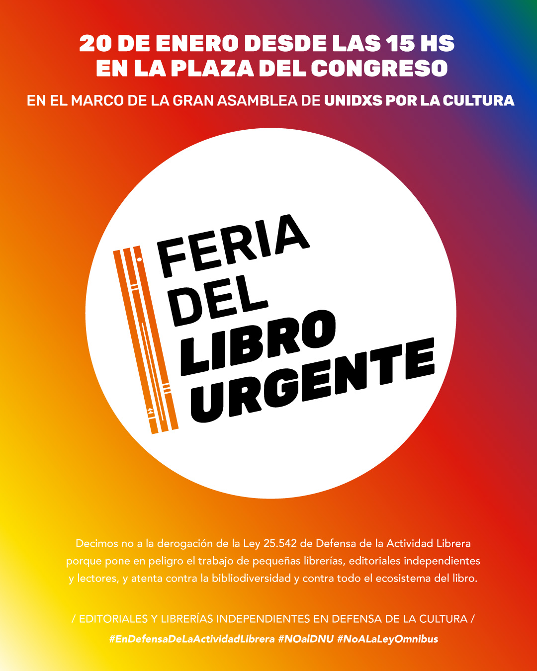 Ante el anuncio del paquete de cultura de la Ley Ómnibus y principalmente ante la tentativa de derogación de la Ley 25.542 de Defensa de la actividad librera, los diferentes actores del sector del libro comenzamos a unirnos y a fortalecer la organización.