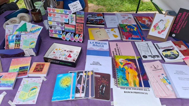 Estuvimos con nuestro puesto lleno de libros, fanzines, stikers, postales y mucha compañia.