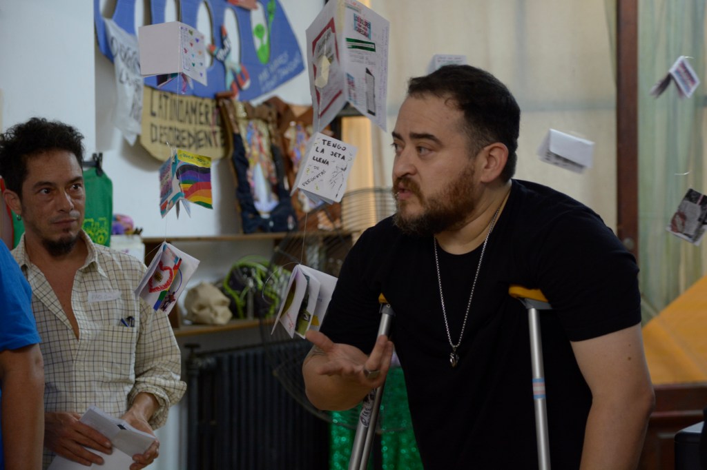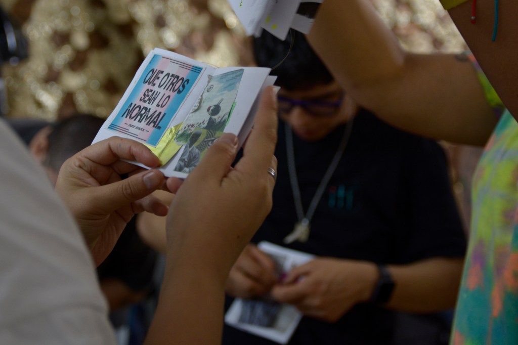El domingo 22 de febrero, fuimos convocados por el Archivo de la Memoria Transmasculina de Argentina para brindar un taller de fanzines. Espacio Tolomocho se acercó con su equipo de intérpretes, el profe y tallerista Ayito, y Felipe invitó a la comunidad sorda trans a participar del encuentro. Nos reunimos a las 18:00 horas para construir nuestra identidad y memoria, reflexionar sobre nuestros referentes y jugar con el papel para crear un nuevo fanzine.