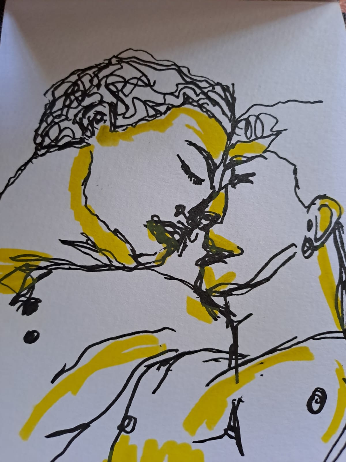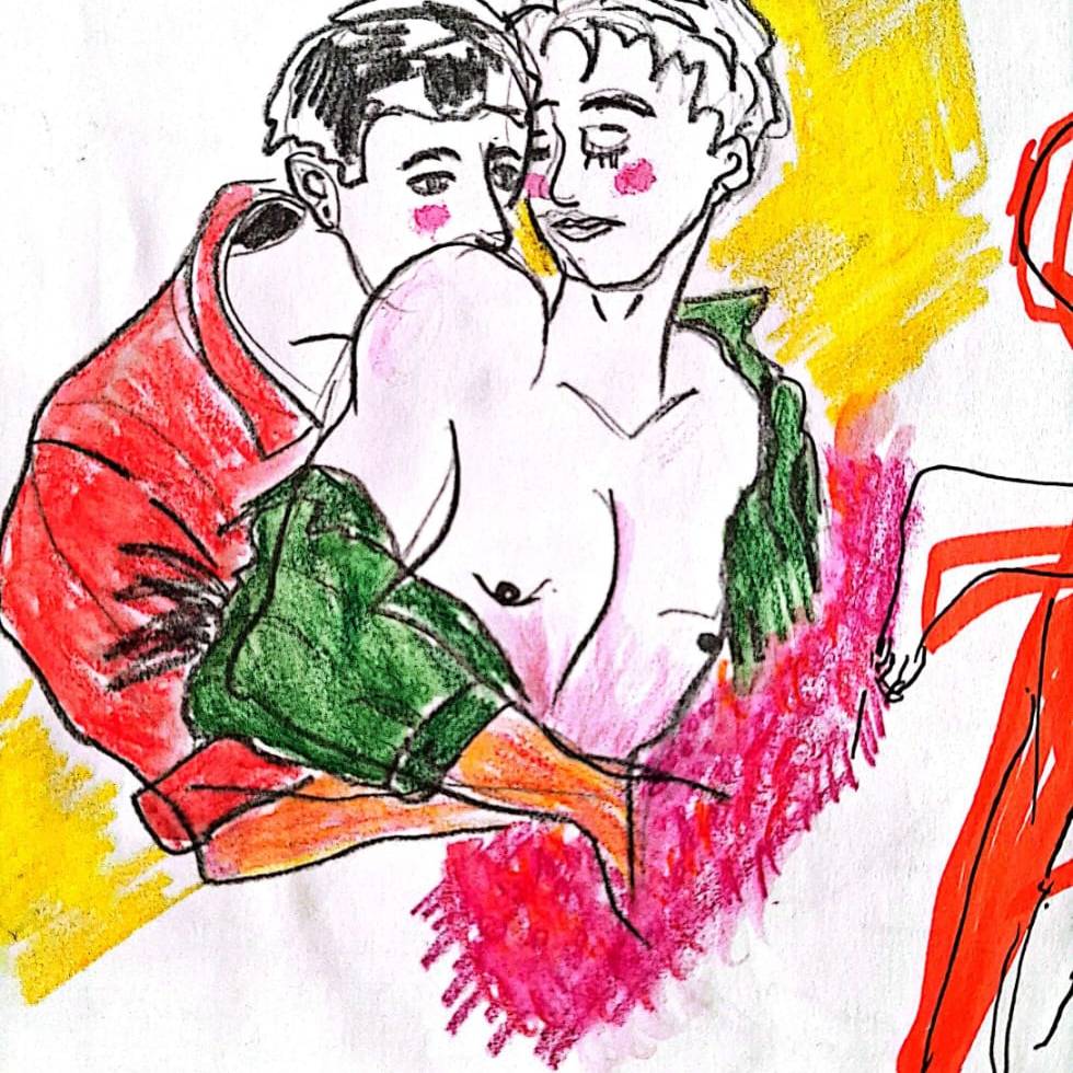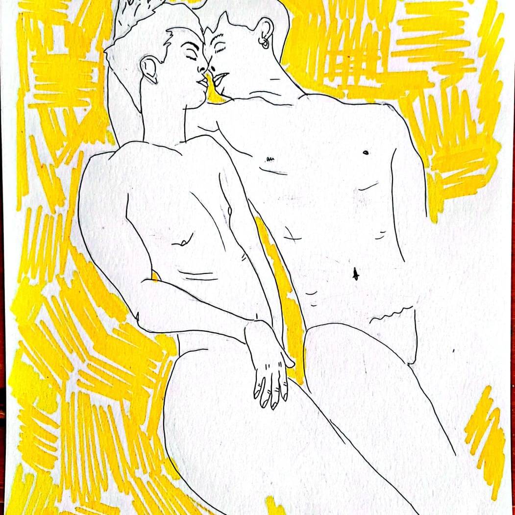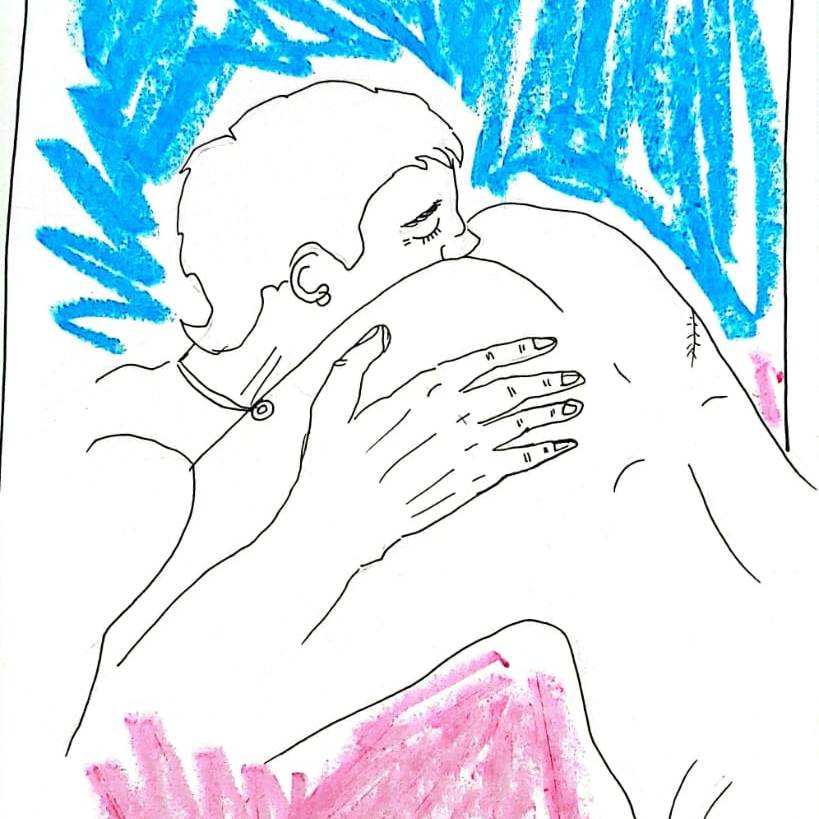 Dibujo realizado por Ayito Cabrera, podes encontrar màs en su instagram: artedisca, Titulo: escenas de un amor cotidiano.